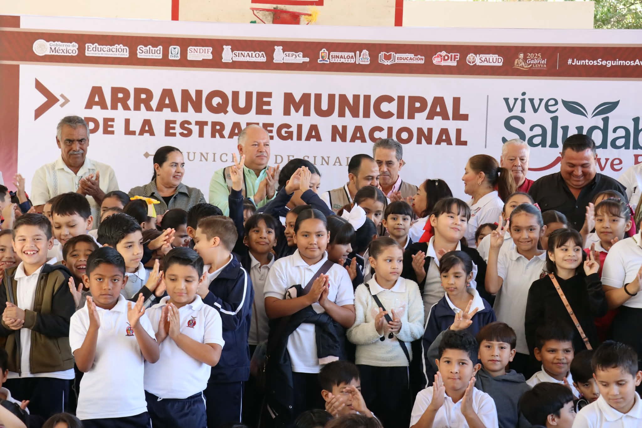 Sinaloa de Leyva, Sin a 08 de diciembre de 2025.- El alcalde Rolando Mercado, junto al Dr. José Alberto Cerón Castro, Coordinador Estatal del Programa Escuela y Salud de la Secretaría de Educación Pública y Cultura, dio inicio al arranque municipal de la Estrategia Nacional “Vive Saludable, Vive Feliz” en la Escuela Primaria Don Miguel Hidalgo y Costilla, ubicada en la comunidad de Ruiz Cortines No. 3.